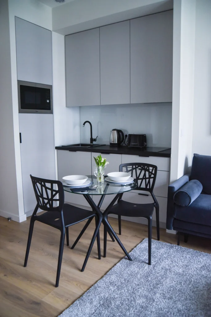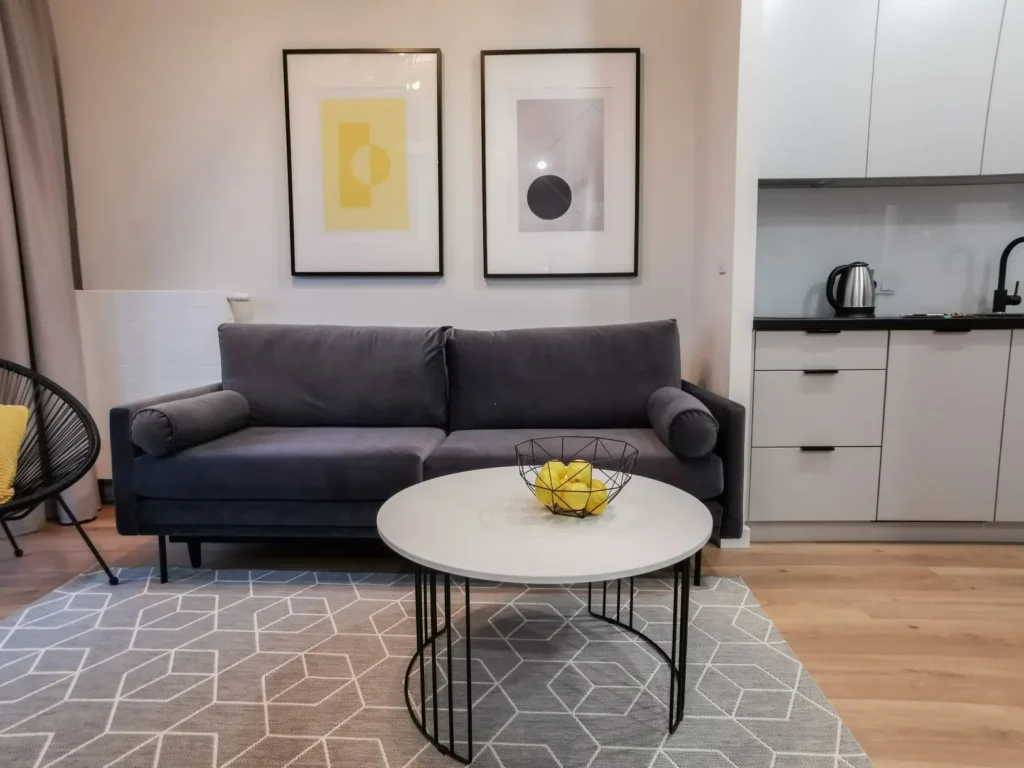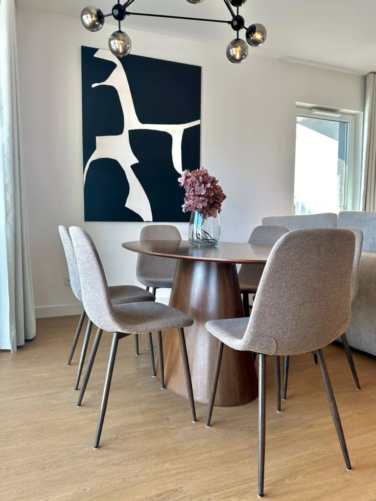 The apartment is fully finished and furnished.